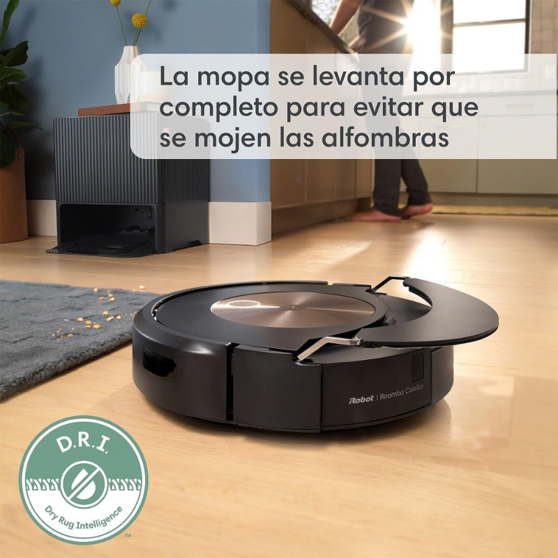 El iRobot Roomba j9+ cuenta con un sistema de succión Power-Lifting y tecnología de limpieza en 3 etapas que incluye barrido, aspirado y filtrado. Este robot aspirador está diseñado para identificar y eliminar suciedad y alérgenos en diferentes tipos de superficies. Incorpora un sistema de navegación avanzado que permite mapear el área y planificar rutas eficientes. Está equipado con un contenedor de suciedad que se vacía automáticamente en su base. Su motor presenta capacidades específicas para aumentar la potencia de succión en áreas de mayor concentración de polvo y suciedad. El Roomba j9+ tiene compatibilidad con asistentes de voz, permitiendo el control por comandos de voz. Incluye sensores que previenen caídas y ayudan a evitar obstáculos durante el proceso de limpieza. El dispositivo es capaz de adaptarse a diferentes estilos de vida, programándose para limpiar en horarios determinados. Utiliza filtros HEPA que capturan hasta el 99% de los alérgenos y partículas de polvo. Su aplicación móvil proporciona información sobre el estado de la limpieza y permite personalizar el funcionamiento del robot. Se puede usar en múltiples tipos de pisos, incluyendo alfombras y pisos duros. El iRobot Roomba j9+ integra tecnología de carga automática, regresando a su base cuando es necesario. Está diseñado para funcionar en diversos espacios, integrando funciones que se adaptan a las necesidades del usuario.
